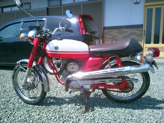 エンジンについてもキック方式なので、何回か、しかけると、息を吹き返しました。2ストの甲高い音が駐輪場に響いてます。